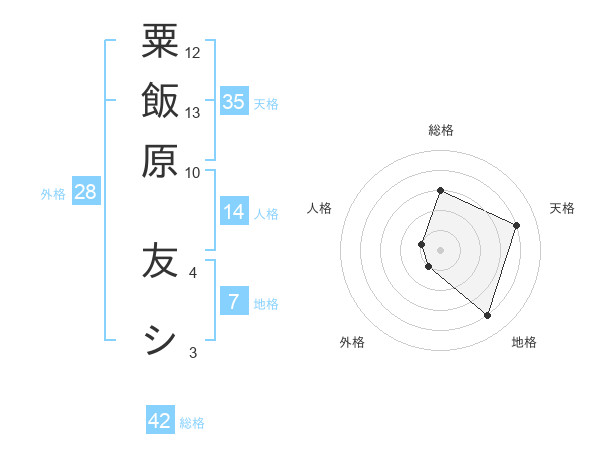 粟飯原 友シさんの総格は42画の3点!