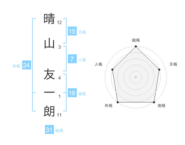 晴山 友一朗さんの総格は31画の5点!