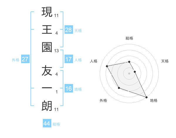 現王園 友一朗さんを姓名の画数から五運を鑑定