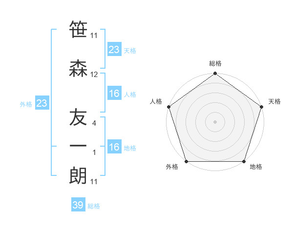 笹森 友一朗さんの総格は39画の5点!