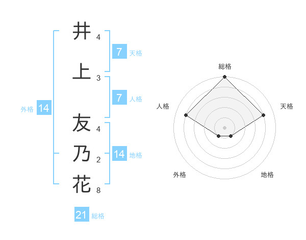 井上 友乃花さんを姓名の画数から五運を鑑定