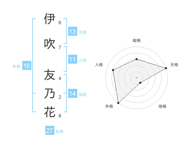 伊吹 友乃花さんを姓名の画数から五運を鑑定