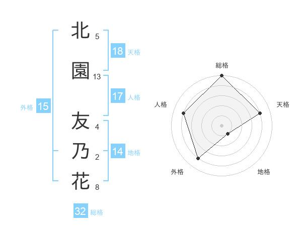 北園 友乃花さんを姓名の画数から五運を鑑定