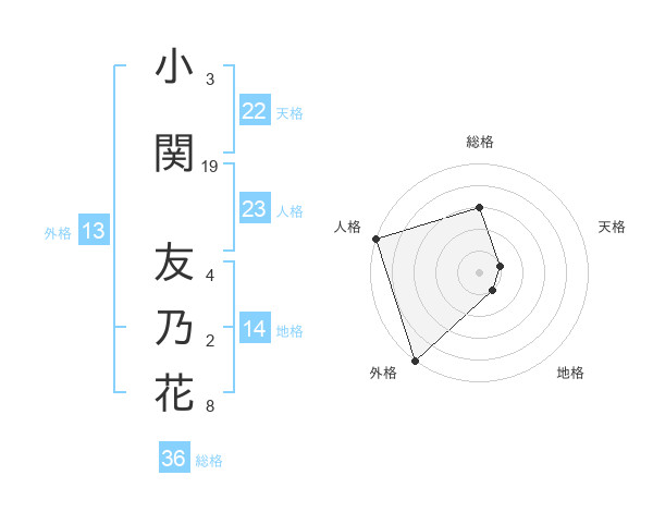 小関 友乃花さんを姓名の画数から五運を鑑定