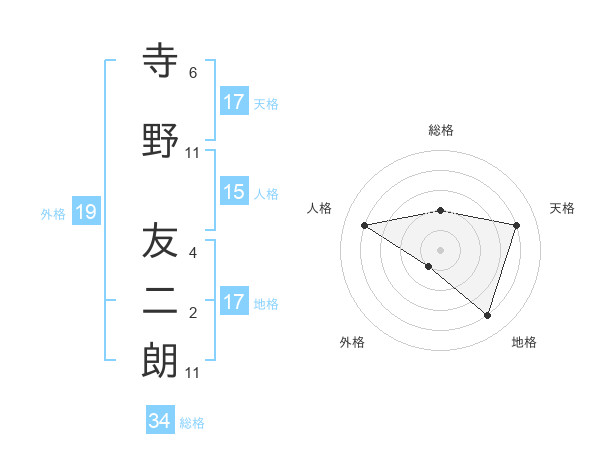 寺野 友二朗さんを姓名の画数から五運を鑑定