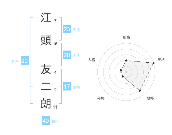 江頭 友二朗さんを姓名の画数から五運を鑑定