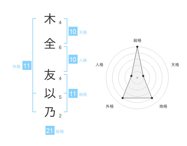 木全 友以乃さんを姓名の画数から五運を鑑定