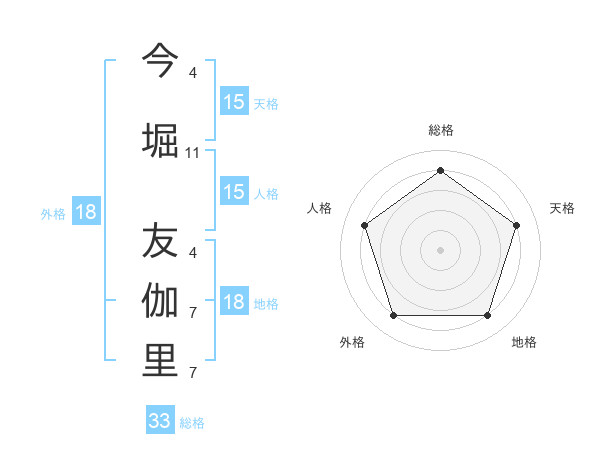 今堀 友伽里さんを姓名の画数から五運を鑑定