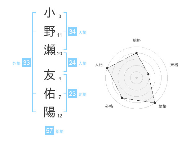 小野瀬 友佑陽さんを姓名の画数から五運を鑑定