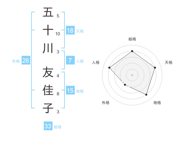五十川 友佳子さんの天格は18画の4点!