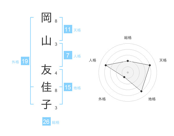 岡山 友佳子さんを姓名の画数から五運を鑑定