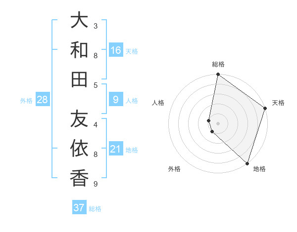 大和田 友依香さんを姓名の画数から五運を鑑定
