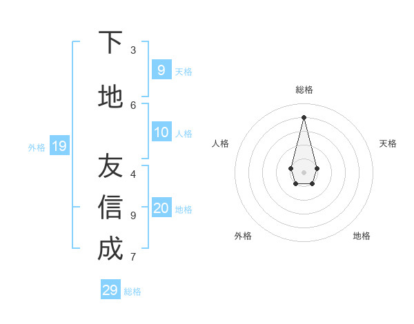 占い結果は姓名判断である以上、良い場合も悪い場合もありますが、決してお名前を誹謗中傷するものでなく、画数の自動計算によって得られたものです。また、本サイトの検索によって得られた鑑定結果で、第三者を誹謗中傷したり名誉を棄損するような行為を禁じます。