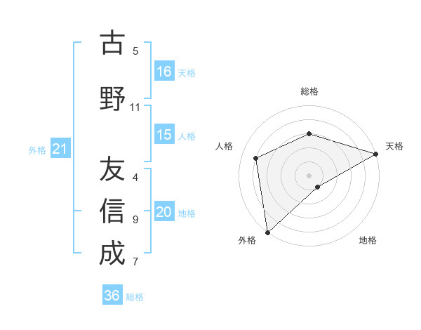 古野 友信成さんの天格は16画の5点!