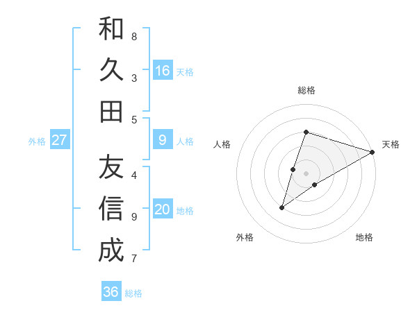 和久田 友信成さんを姓名の画数から五運を鑑定