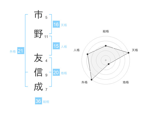 市野 友信成さんの天格は16画の5点!