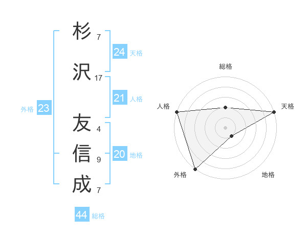 杉沢 友信成さんを姓名の画数から五運を鑑定