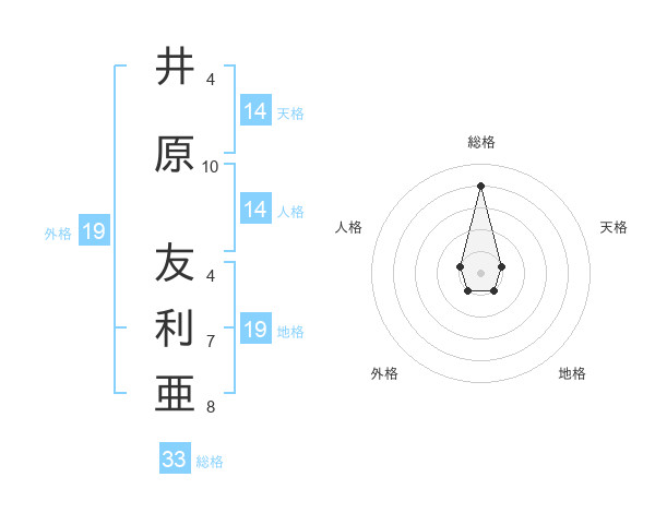 井原 友利亜さんの総格は33画の4点!