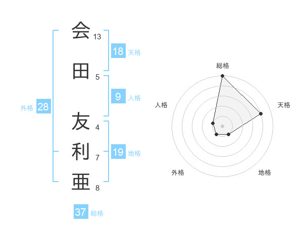 会田 友利亜さんの総格は37画の5点!