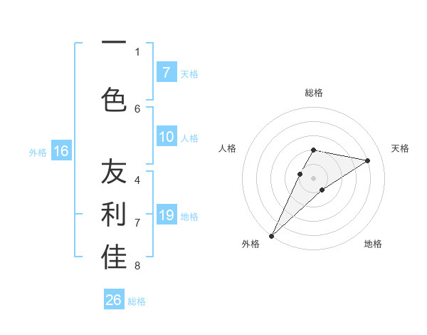 一色 友利佳さんを姓名の画数から五運を鑑定