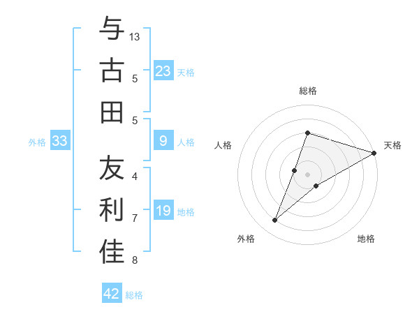 与古田 友利佳さんを姓名の画数から五運を鑑定