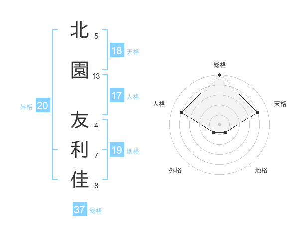 北園 友利佳さんを姓名の画数から五運を鑑定
