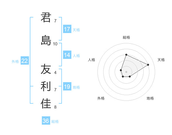 君島 友利佳さんを姓名の画数から五運を鑑定
