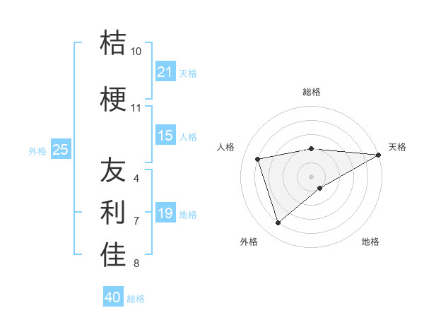 桔梗 友利佳さんを姓名の画数から五運を鑑定
