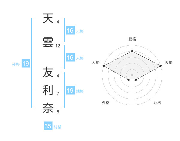 天雲 友利奈さんを姓名の画数から五運を鑑定