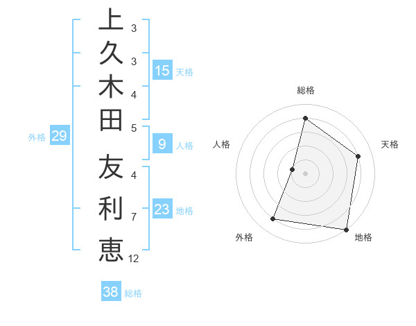 上久木田 友利恵さんを姓名の画数から五運を鑑定