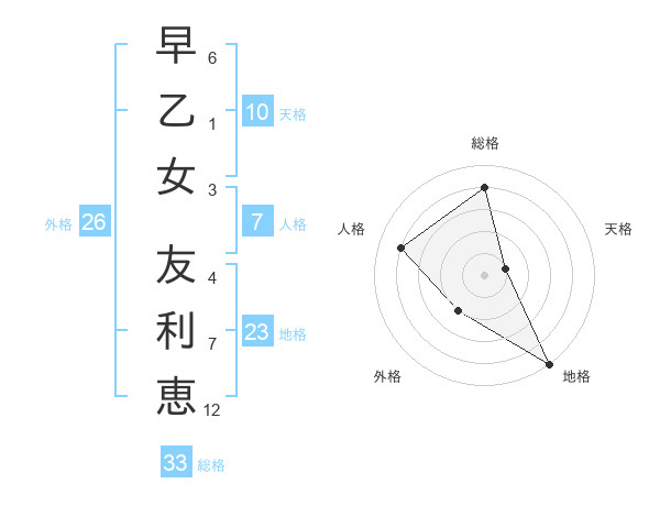 早乙女 友利恵さんを姓名の画数から五運を鑑定