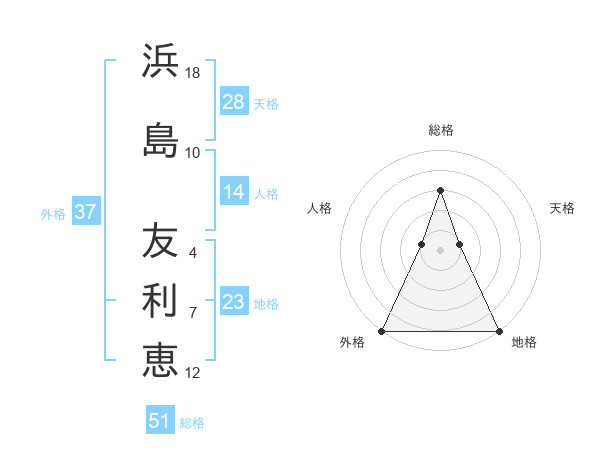 浜島 友利恵さんを姓名の画数から五運を鑑定