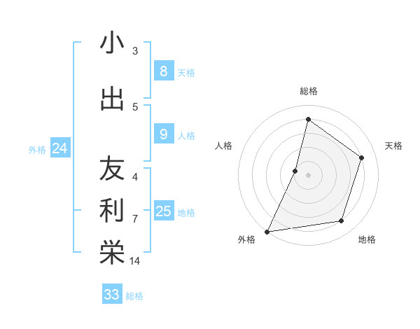 小出 友利栄さんの外格は24画の5点!