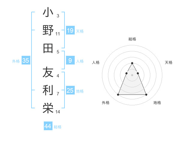 小野田 友利栄さんを姓名の画数から五運を鑑定