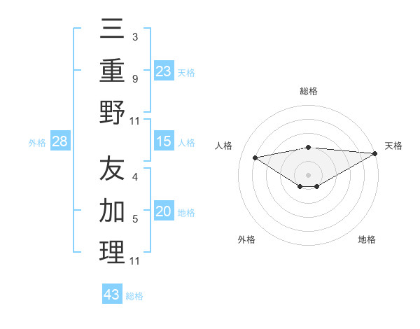 三重野 友加理さんを姓名の画数から五運を鑑定
