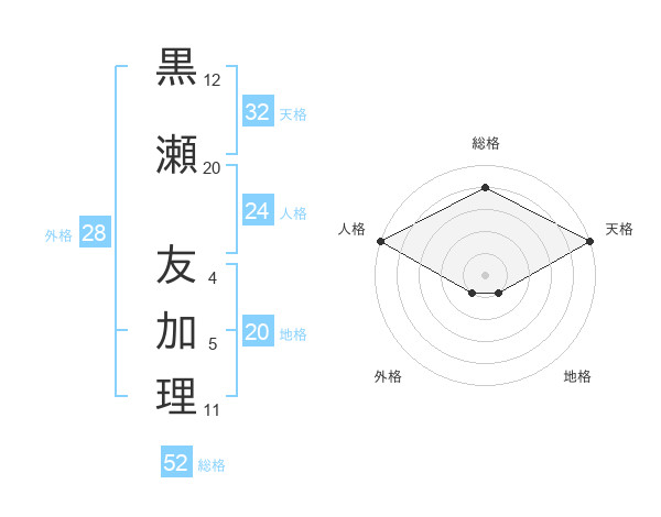 黒瀬 友加理さんを姓名の画数から五運を鑑定