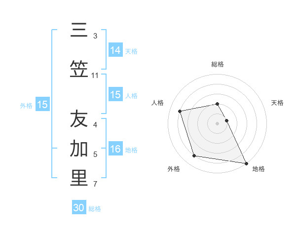 三笠 友加里さんを姓名の画数から五運を鑑定