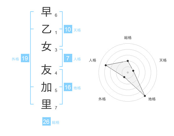 早乙女 友加里さんを姓名の画数から五運を鑑定