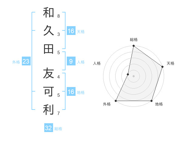 和久田 友可利さんを姓名の画数から五運を鑑定