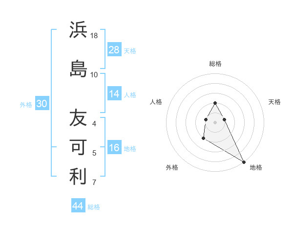 浜島 友可利さんを姓名の画数から五運を鑑定