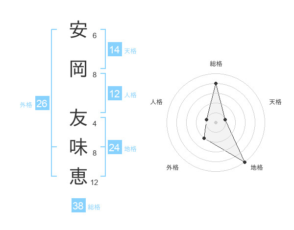 安岡 友味恵さんの天格は14画の1点!