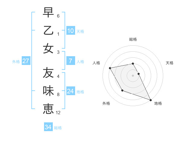 早乙女 友味恵さんの総格は34画の2点!
