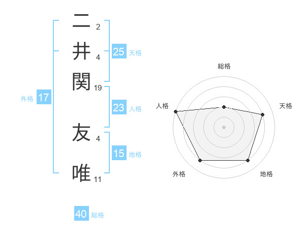 二井関 友唯さんの総格は40画の2点!