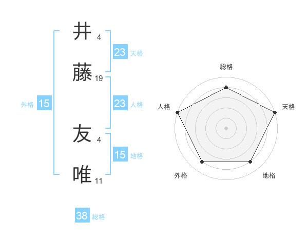 井藤 友唯さんの天格は23画の5点!