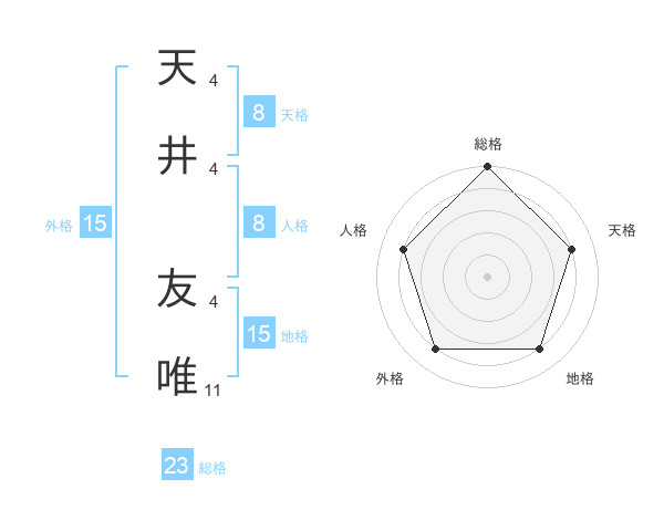 天井 友唯さんの総格は23画の5点!