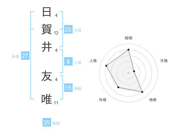日賀井 友唯さんを姓名の画数から五運を鑑定