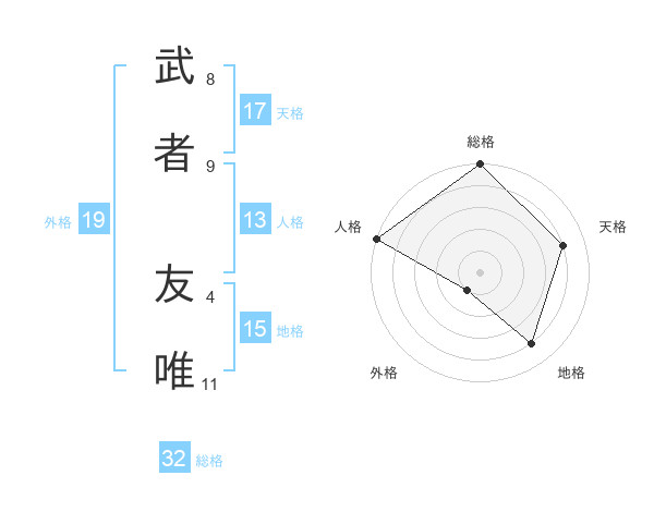 武者 友唯さんの総格は32画の5点!