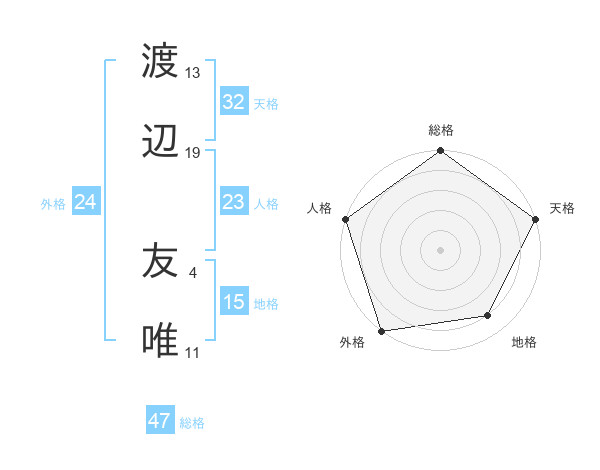 渡辺 友唯さんを姓名の画数から五運を鑑定