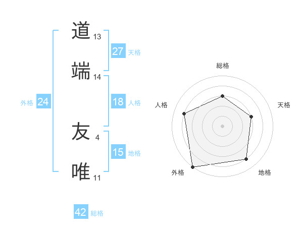 道端 友唯さんの外格は24画の5点!