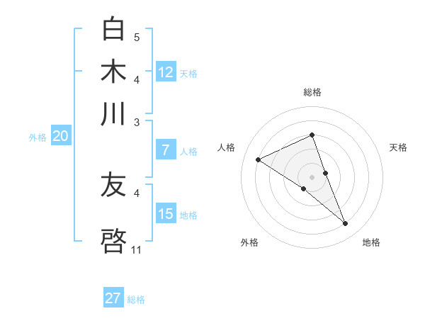 白木川 友啓さんの総格は27画の3点!